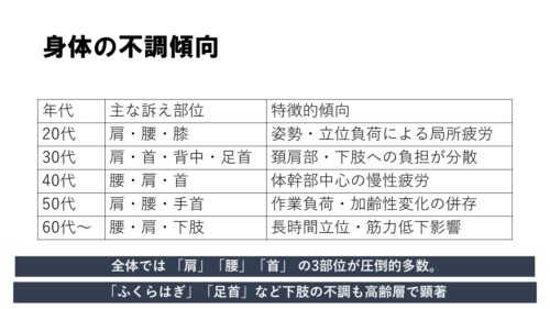肩・腰・膝などの痛みを抱える方が多く来院されます。
